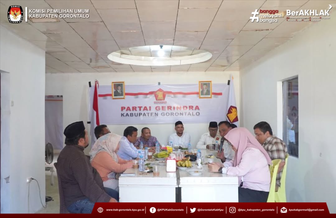 Ketua KPU Kabupaten Gorontalo, Windarto M. Bahua menyampaikan, Terimakasih atas penyambutan DPC Partai Gerindra yang diluar ekspetasi. Menurut Windarto, ada tiga point penting dalam kunjungan ini. Yang pertama terkait dengan Pemutakhiran Parpol, yang kedua Pendidikan Pemilih menjelang Pemilu dan Pemilihan tahun 2029 dan terakhir Ketua Windharto berharap, hubungan Silaturahmi yang telah terjalin dengan Partai Gerindra tetap terawat.