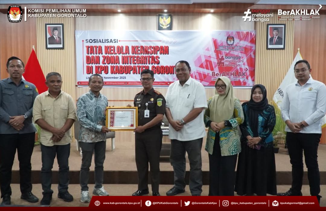 #TemanPemilih, Komisi Pemilihan Umum (KPU) Kabupaten Gorontalo menyelenggarakan Sosialisasi Tata Kelola Kearsipan dan Zona Integritas di KPU Kabupaten Gorontalo. Bertempat di Aula Kantor KPU Kabupaten Gorontalo, Rabu (19/11/2025).
