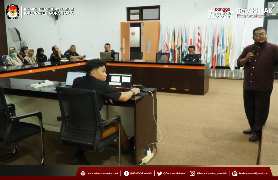 Kegiatan ini diikuti oleh Sekretaris KPU Kabupaten Gorontalo dan seluruh jajaran sekretariat dan turut hadir Anggota KPU Kabupaten Gorontalo, Kadir Mertosono selaku narasumber dalam kegiatan tersebut.
