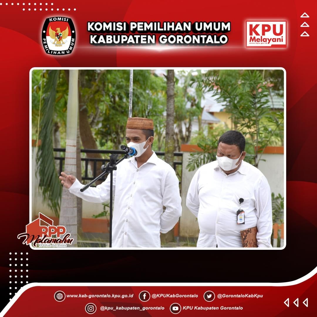 Bertindak selaku pembina apel yakni Anggota KPU Kabupaten Gorontalo Divisi .Sosdiklih Parmas dan SDM Rivon Umar.