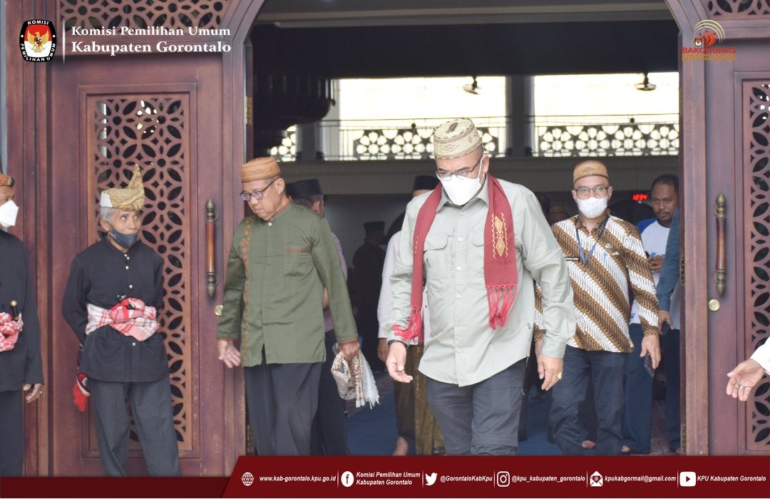KPU Kabupaten Gorontalo turut serta melakukan penyambutan sekaligus melaksanakan Sholat Jum'at bersama rombongan di Mesjid Agung Baiturrahman Limboto. Dan selanjutnya KPU RI bersama rombongan menuju Rumah Dinas Gubernur Gorontalo untuk melaksanakan pertemuan dengan FORKOPIMDA Provinsi Gorontalo.