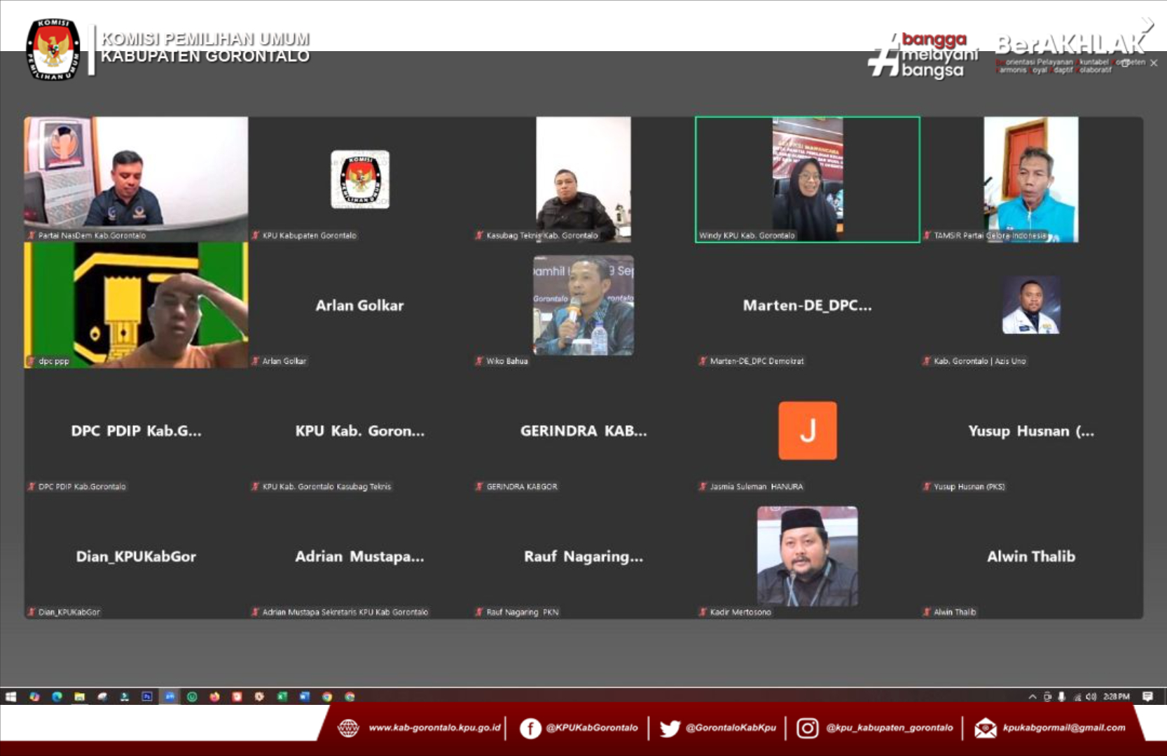 Kegiatan yang berlangsung secara daring melalui Zoom ini dibuka langsung oleh Ketua KPU Kabupaten Gorontalo, Windarto Bahua, dan diikuti oleh seluruh pimpinan partai politik se-Kabupaten Gorontalo, Rabu 25 Juni 2025.