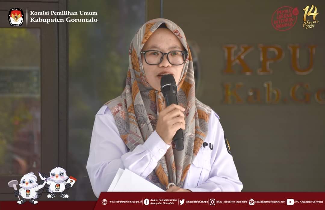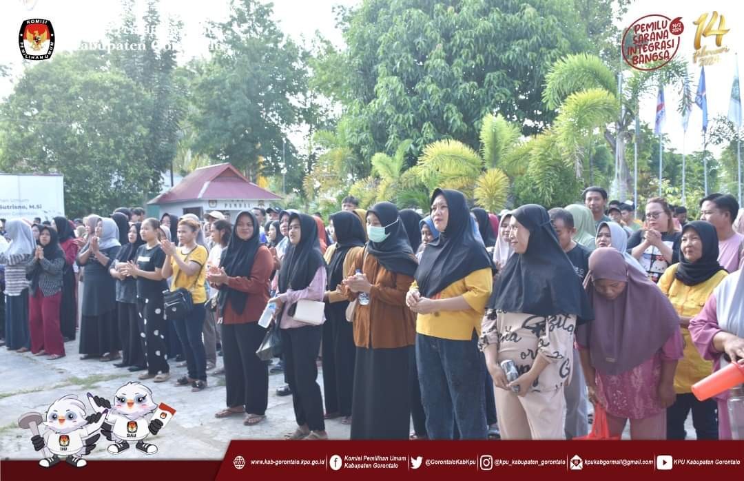 Komisi Pemilihan Umum (KPU) Kabupaten Gorontalo, menggelar apel bagi 365 orang peserta terkait pelaksanaan Sortir dan Pelipat surat suara Pemilu 2024 di halaman kantor KPU Kabupaten Gorontalo. Kamis, (4/1/2024).