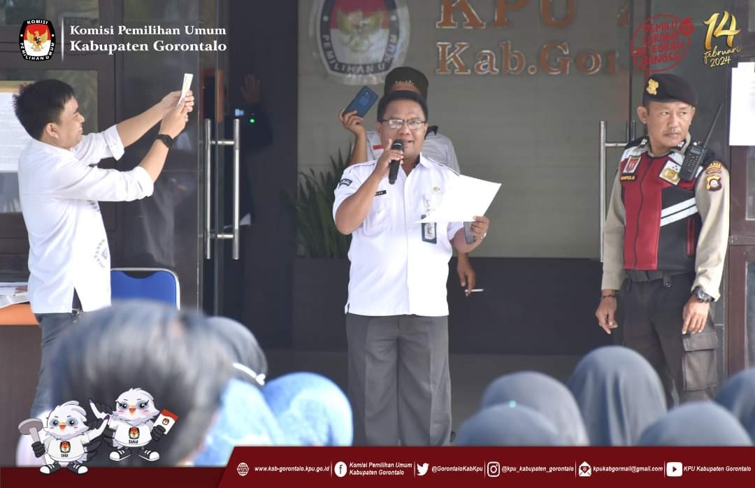 Ketua KPU Kabupaten Gorontalo Roy Hamrain saat memberikan sambutan mengatakan, surat suara adalah dokumen negara dimana sejak saat distribusi dari pelabuhan Gorontalo sampai dengan tiba di Gudang KPU dikawal aparat kepolisian.