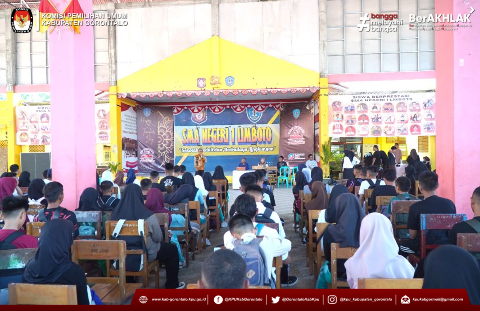 #TemanPemilih, Dalam rangka meningkatkan partisipasi generasi muda dalam Pemilu, Komisi Pemilihan Umum (KPU) Kabupaten Gorontalo menggelar sosialisasi pemilih pemula di Aula SMAN 1 Limboto, Jumat (4/07/2025).