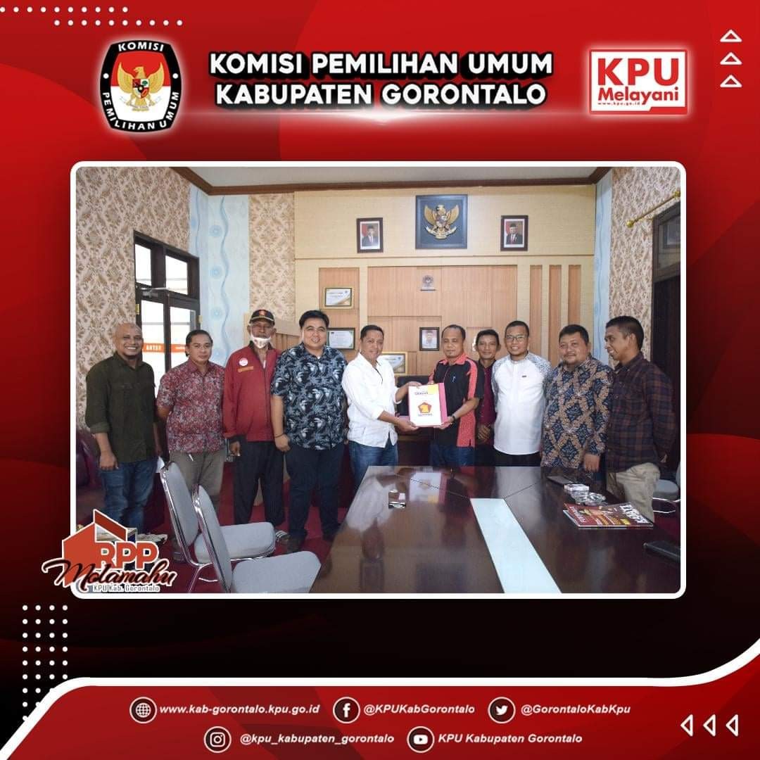 #TemanPemilih,.. KPU Kabupaten Gorontalo menerima kedatangan Pengurus DPC Partai Gerindra Kabupaten Gorontalo. Bertempat di ruang Kerja Ketua KPU Kabupaten Gorontalo. Selasa, (18/01/2022).